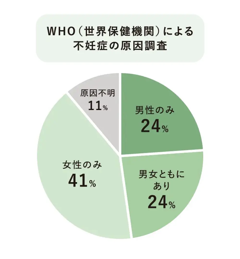 不妊の原因は女性にあると思われがちですが、全体の約半数に男性側が関与しているとされています。